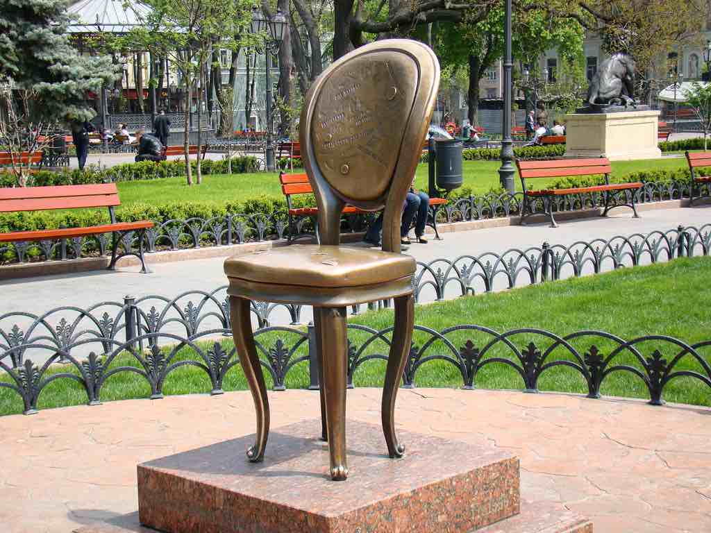 The 12th Chair Monument – The 12th Chair Monument, situated right on Deribasovskaya Street, is another symbol of the city. Everyone, who read a novel by Ilf and Petrov or saw a movie “12 Chairs”, adores this cunning statue. It is one of the most popular places for a photo and if you make a wish sitting on this chair it will come true.